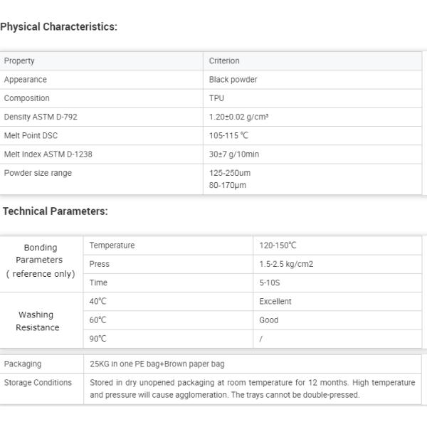 Heat Thermoplastic Black DTF Powder TPU Polyurethane Hot Melt Adhesive Powder Images |